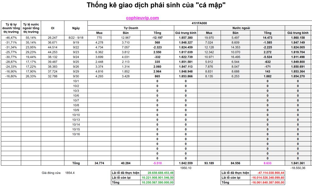 - Khối Tự doanh vẫn đang ở vị thế Short ròng lũy kế lớn (-5,510 hợp đồng) và đã quay lại có lãi lớn (+10.2 tỷ).
