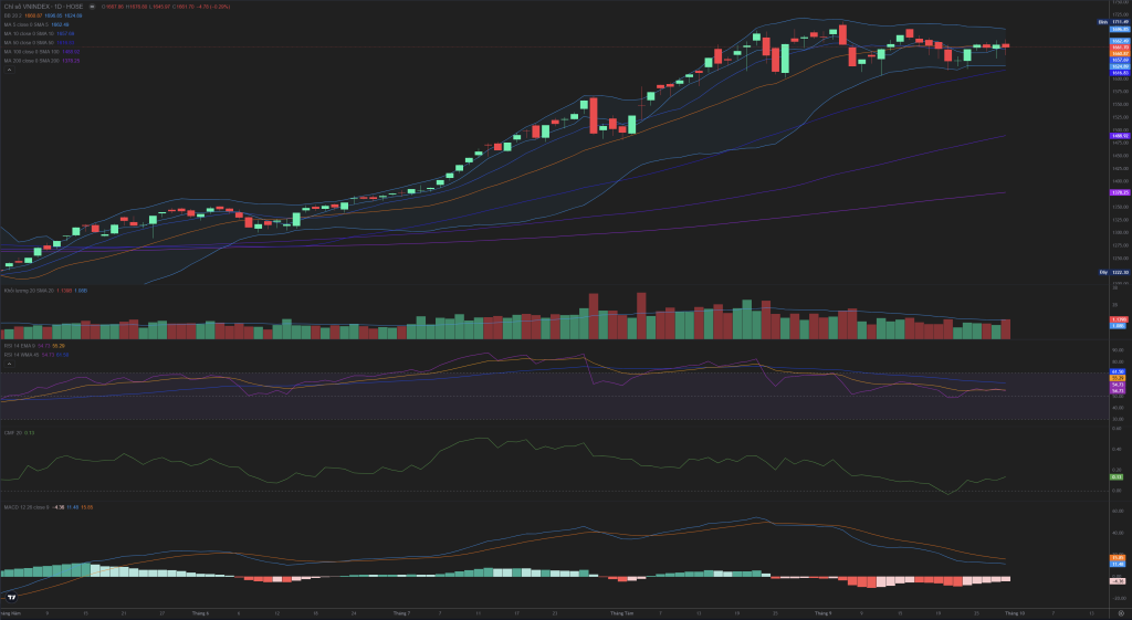 - RSI (52.11) vẫn đang nằm trên đường WMA(45) (50.61). Điều này cho thấy động lượng chung vẫn đang được hỗ trợ và chưa chuyển sang xu hướng giảm.