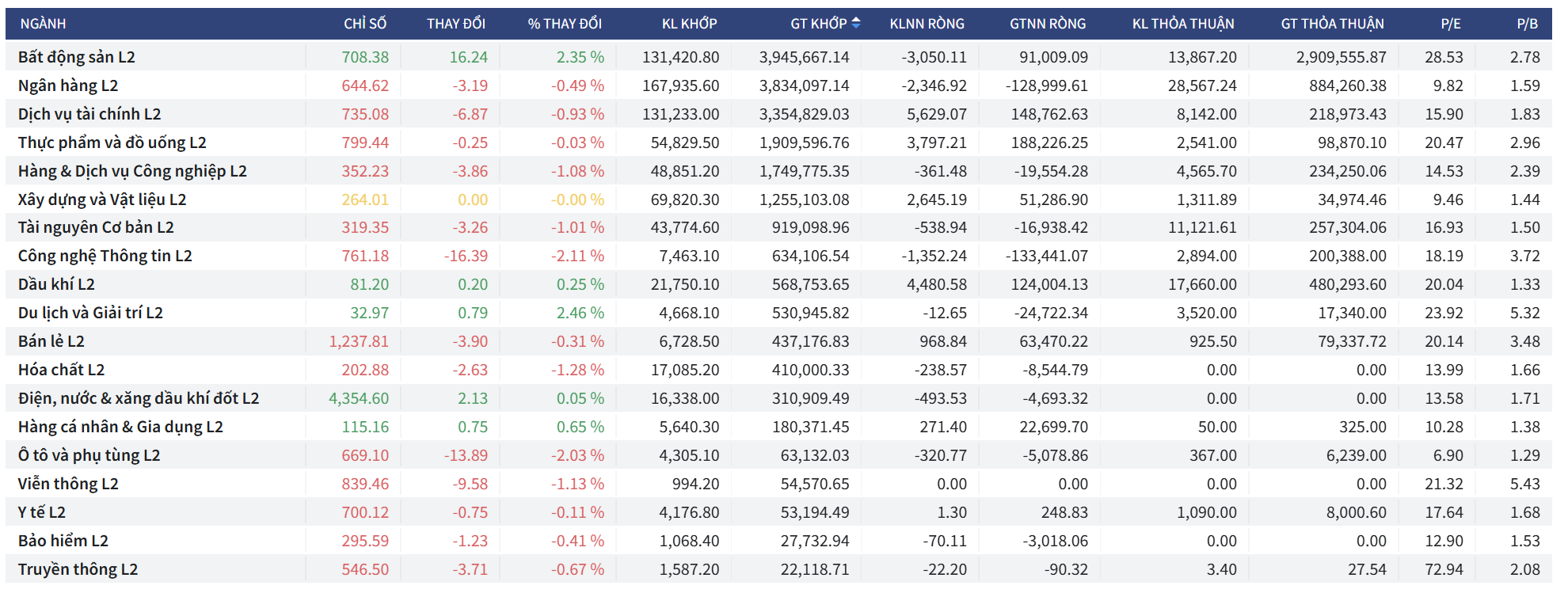 - Thanh khoản khớp lệnh đạt 632.98 triệu cổ phiếu và 18,388,500 triệu VNĐ. Thanh khoản duy trì ở mức trung bình.