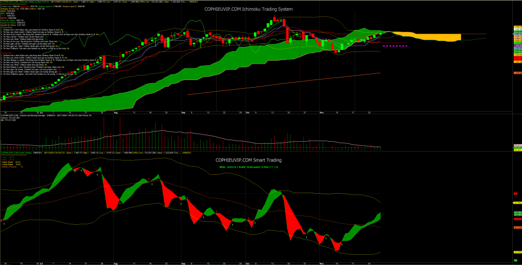 - Phiên 28/11 là một phiên tăng điểm, củng cố xu hướng tăng ngắn hạn khi giá nằm trên tất cả các MA quan trọng.