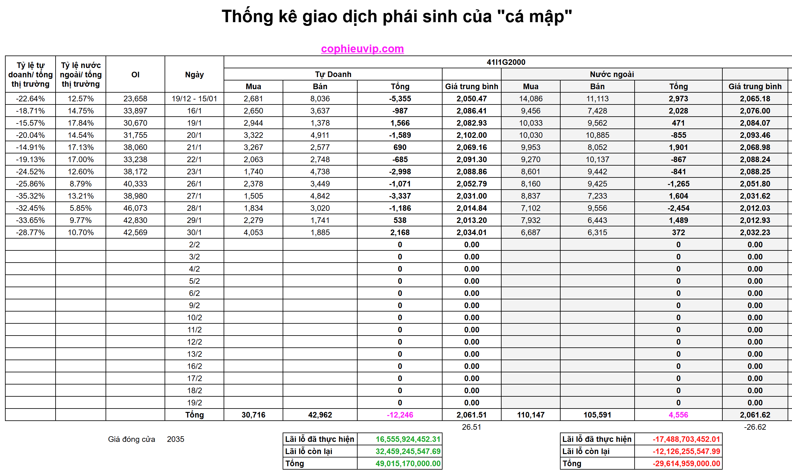 Kết luận sơ bộ: Phiên giao dịch ngày 30/01/2026 cho thấy phe mua đã giành lại quyền kiểm soát hoàn toàn. Sự đồng thuận giữa lực mua chủ động và đường chỉ số Index dâng cao trong phiên chiều xác nhận dòng tiền bắt đáy và dòng tiền đầu tư đã nhập cuộc một cách tự tin, sẵn sàng hấp thụ các nhịp chốt lời ngắn hạn để đẩy thị trường đi lên.