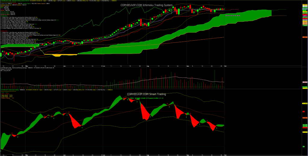 • Hiện tại, chỉ báo Smart Trading đang hiển thị màu Xanh, cho thấy xu hướng chính trong ngắn hạn vẫn đang là XU HƯỚNG TĂNG. Tín hiệu MUA từ ngày 24/09 vẫn còn hiệu lực.