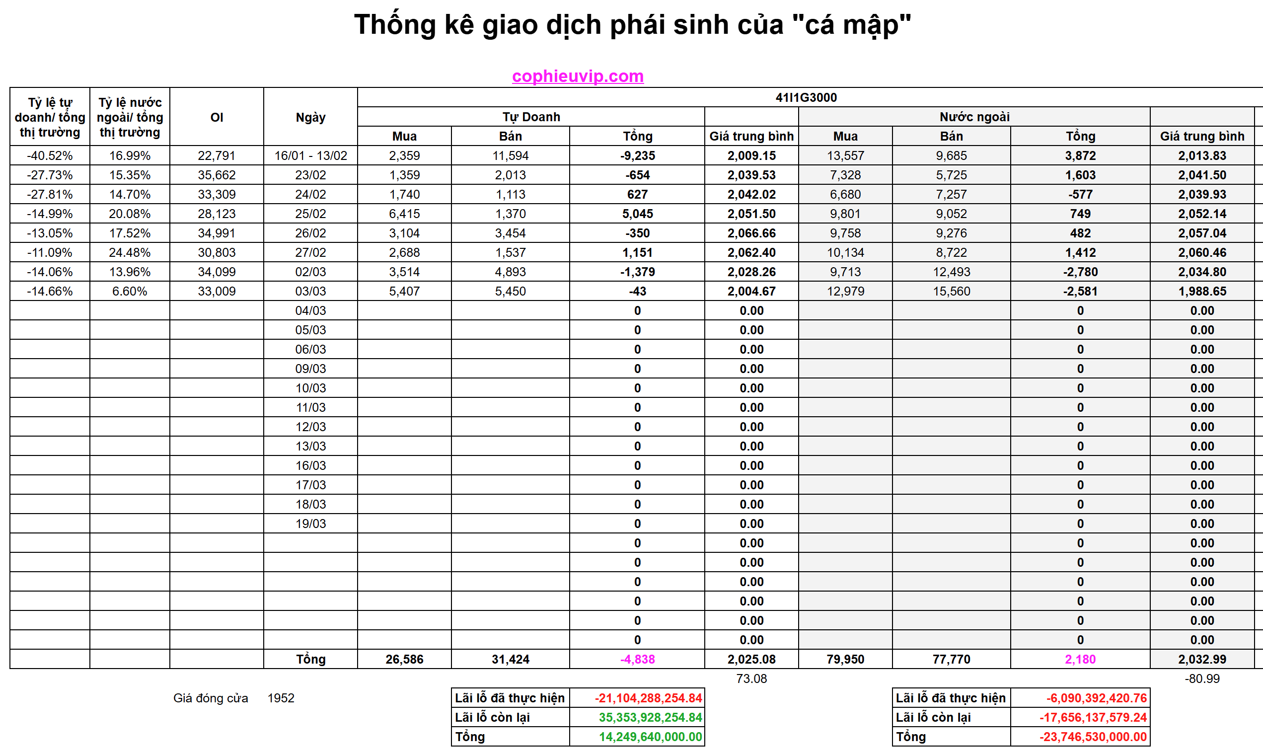- Giá đóng cửa của chỉ số phái sinh phiên 03/03 là 1,952.