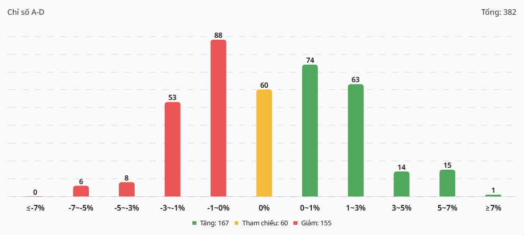 - Trạng thái “xanh lòng đỏ vỏ” cực đoan: Số mã tăng (167) vẫn nhỉnh hơn số mã giảm (155), nhưng chỉ số giảm sâu do áp lực tháo chạy tại nhóm trụ (VIC, VHM lấy đi hơn 20 điểm).