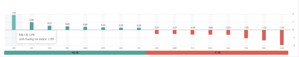 - Tổng điểm đóng góp từ nhóm tích cực đạt +5.15 điểm.