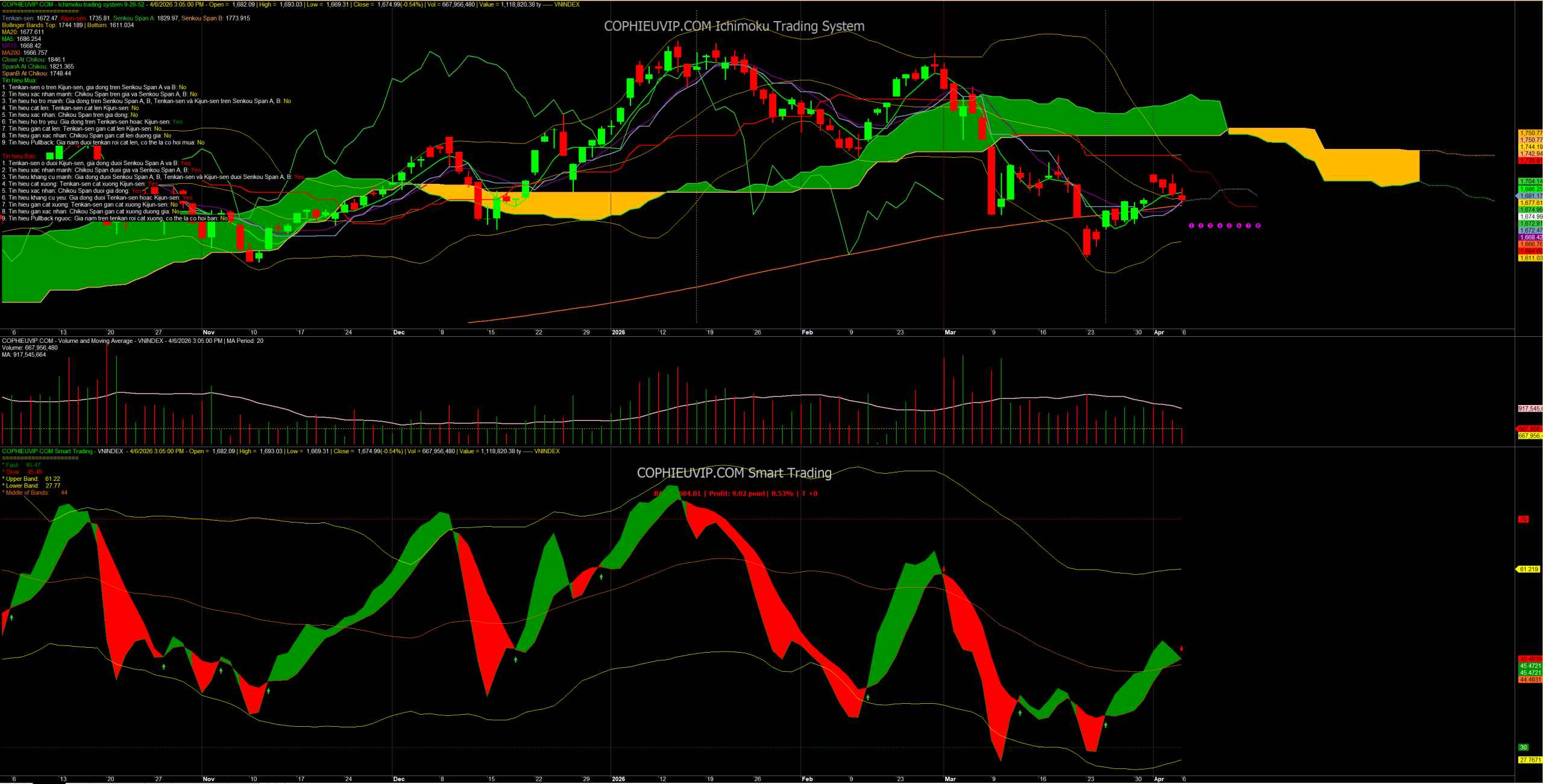 Diễn biến thực tế của phiên 06/04/2026 cho thấy thị trường đang vận động đan xen giữa Kịch bản 1 và Kịch bản 2 mà chúng ta đã dự báo trong bản tin Bắt Mạch Chứng Khoán Ngày 06/04/2026: Quốc hội khai mạc và FTSE nâng hạng có cứu được Phân kỳ âm?