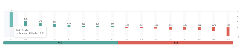- Tổng điểm đóng góp từ nhóm tích cực đạt +6.33 điểm.