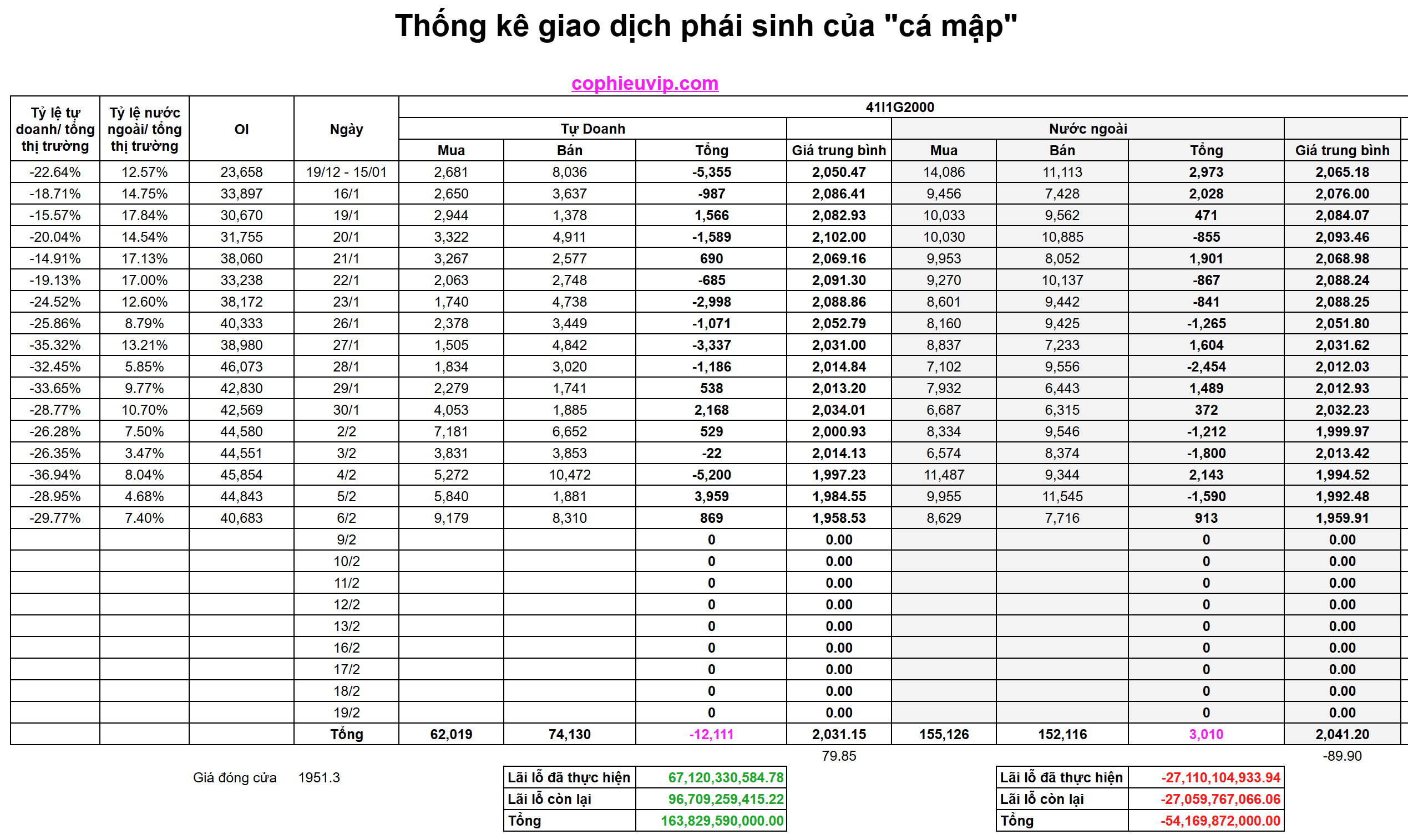 - Khối ngoại tiếp tục bán ròng mạnh với giá trị đạt -939,015 triệu VNĐ, khối lượng bán ròng tương ứng là -20,532.51 nghìn đơn vị.