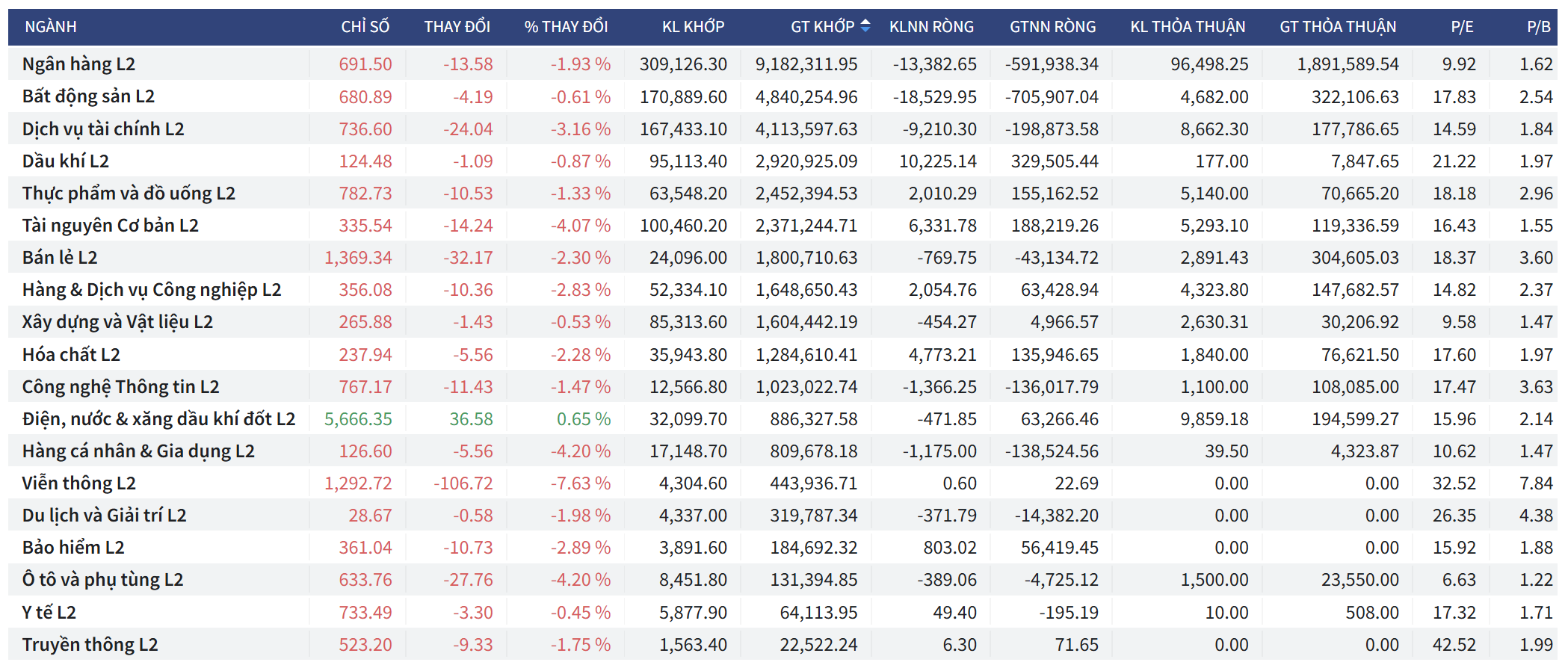 - VNMID (Midcap): Ghi nhận mức giảm sâu nhất thị trường khi mất đến -67.36 điểm (-3.03%), đóng cửa tại 2,154.20 điểm. Khối ngoại bán ròng tại nhóm này là -40,669 triệu VNĐ.
