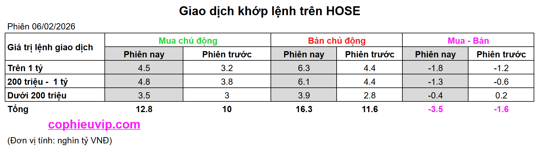 Kết luận sơ bộ: Phiên giao dịch ngày 06/02/2026 cho thấy trạng thái tâm lý cực kỳ bi quan khi phe Bán chủ động áp đảo toàn diện và bùng nổ xung lực vào cuối phiên. Việc chỉ số bị đẩy xuống mức thấp nhất ngày đi kèm với lực bán tháo giờ chót xác nhận áp lực cung vẫn đang ở mức cao trào, báo hiệu những rủi ro giảm điểm còn hiện hữu cho các phiên giao dịch đầu tuần tới.