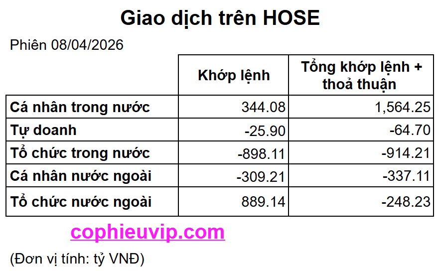 - Thanh khoản thị trường: Giá trị giao dịch khớp lệnh trên HOSE đạt 30.405,6 tỷ VNĐ, tăng gấp 2,27 lần so với phiên ngày 07/04 (13.381,6 tỷ). Khối lượng giao dịch đạt 1.121,94 triệu cổ phiếu. Việc thanh khoản bùng nổ đi kèm điểm số tăng mạnh là tín hiệu xác nhận dòng tiền đã quay trở lại thị trường, nhưng cũng đồng thời cho thấy áp lực cung chốt lời tiềm năng đã bắt đầu xuất hiện tại các vùng giá cao.