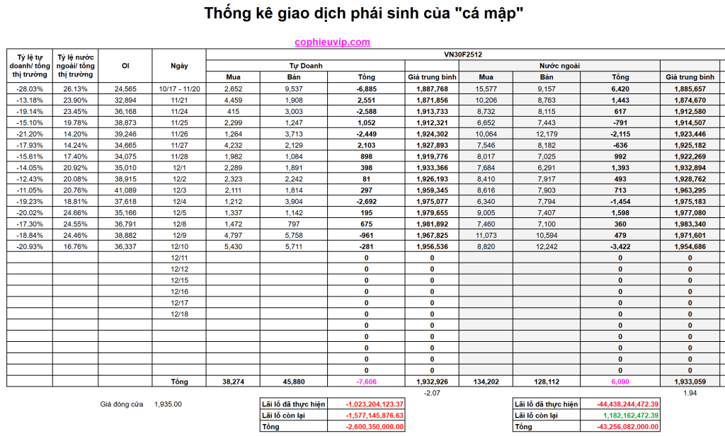 - Áp lực Short Chiếm ưu thế: Phiên 10/12 xác nhận áp lực Short mạnh mẽ từ Khối ngoại và sự quay đầu bán ròng của Tự doanh.