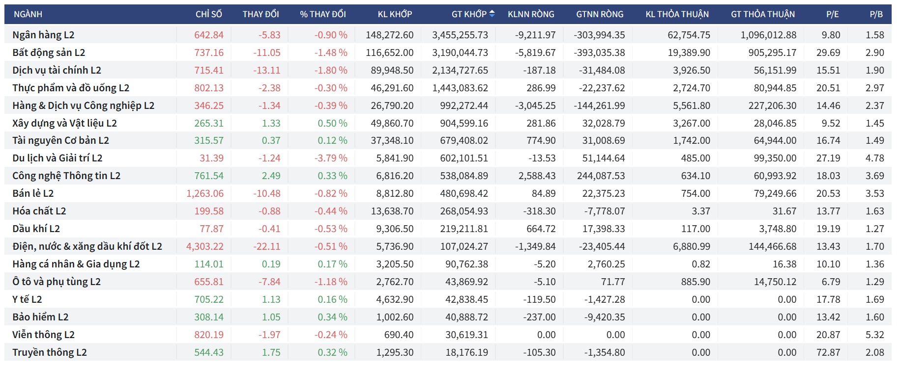 - Diễn biến: Áp lực bán tháo lan rộng, Khối ngoại đẩy mạnh bán và phá vỡ các ngưỡng hỗ trợ quan trọng.