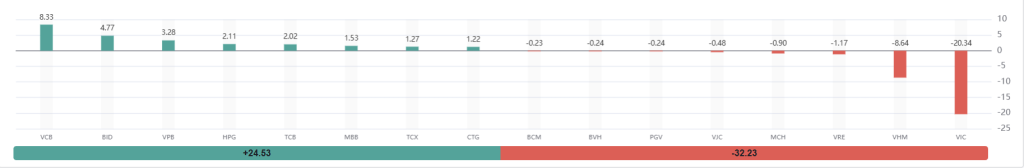 PHÂN TÍCH CÁC CỔ PHIẾU TÁC ĐỘNG NHIỀU NHẤT ĐẾN CHỈ SỐ VN-INDEX