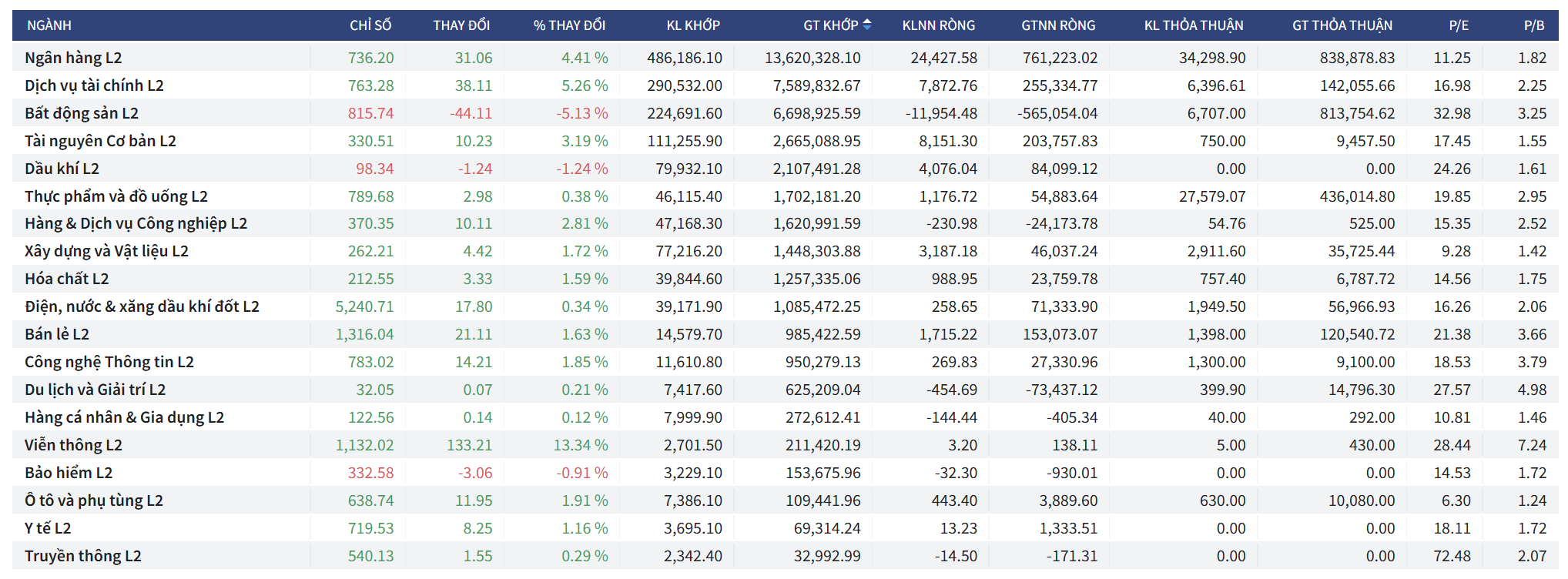 - Chỉ số VNMID (Midcap): Là nhóm bứt phá mạnh nhất thị trường, đóng cửa tại 2,236.28 điểm, tăng tới +60.63 điểm (+2.79%). Khối ngoại cũng mua ròng tại đây với mức giá trị +190,254.0 triệu VNĐ.