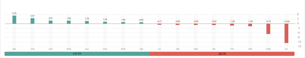 PHÂN TÍCH CÁC CỔ PHIẾU TÁC ĐỘNG NHIỀU NHẤT ĐẾN CHỈ SỐ VN-INDEX