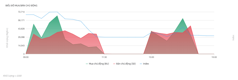 - Áp lực bán duy trì: Sau 10:00, lực Bán chủ động lại chiếm ưu thế, khiến chỉ số giảm sâu và đóng cửa phiên sáng ở mức thấp.