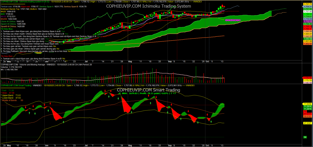 Phiên giao dịch ngày 15/10/2025 chứng kiến sự giằng co mạnh mẽ của VN-Index, với thanh khoản cao và sự phân hóa giữa các nhóm vốn hóa.