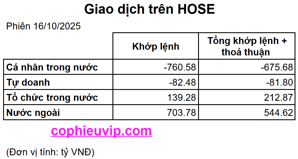 • Cá nhân trong nước: Bán ròng mạnh -760.58 tỷ VND (khớp lệnh) và -675.68 tỷ VND (tổng hợp). Cá nhân là nhóm bán ròng lớn nhất thị trường.