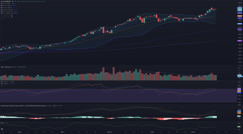 Ngưỡng quyết định: Vùng 1,759 điểm (MA5) là ngưỡng hỗ trợ quan trọng nhất để duy trì đà tăng ngắn hạn.