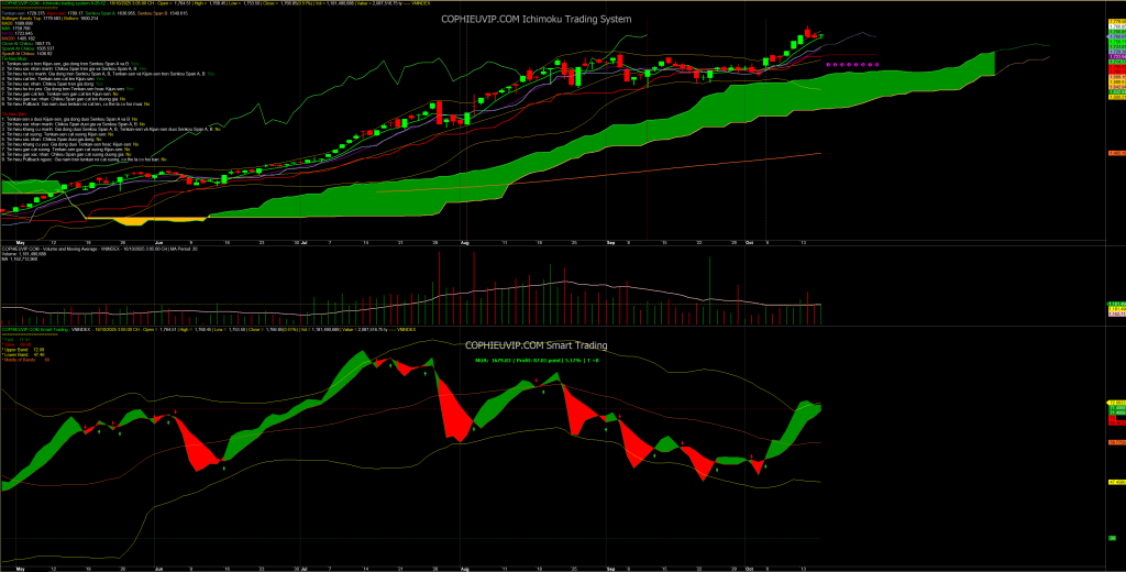 • Giá đóng cửa nằm trên MA5 (1,759.71) và MA10 (1,723.94).