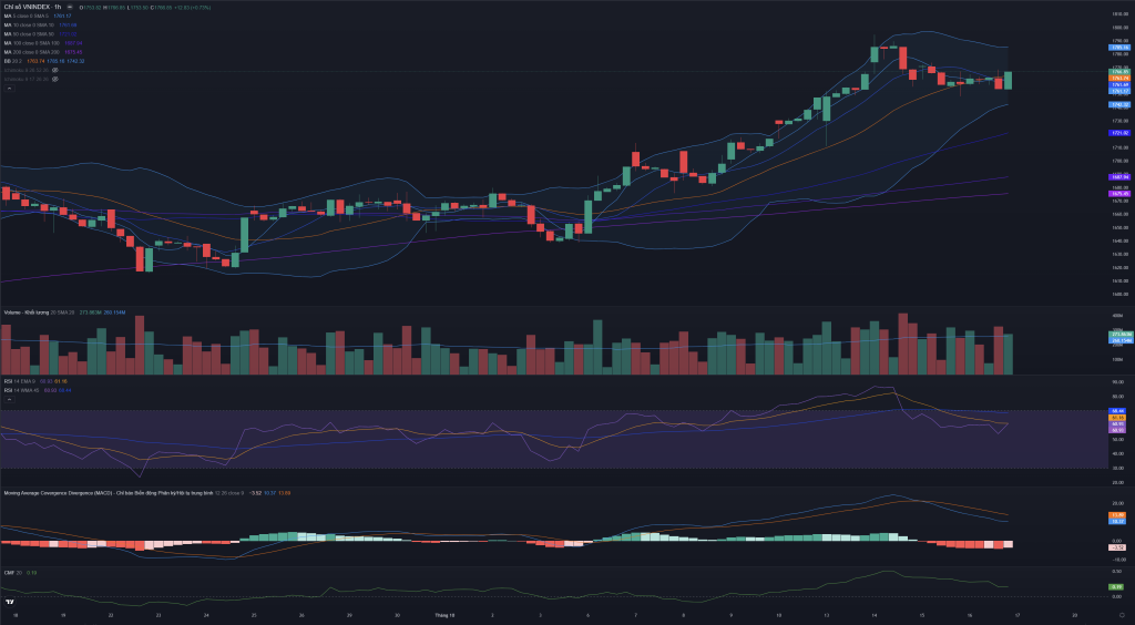 Cùng nhìn lại Phiên giao dịch 16/10/2025:  thị trường mở cửa với tâm lý tương đối tích cực, VN-Index tạo một khoảng trống tăng giá 6 điểm sau ATO. Phần lớn thời gian phiên sáng, chỉ số biến động trong biên độ hẹp quanh mốc tham chiếu. Bước sang phiên chiều, diễn biến thị trường có phần giằng co theo chiều hướng tiêu cực, áp lực chốt lời khiến VN-Index trượt khỏi mốc 1,770 điểm vào cuối phiên.
