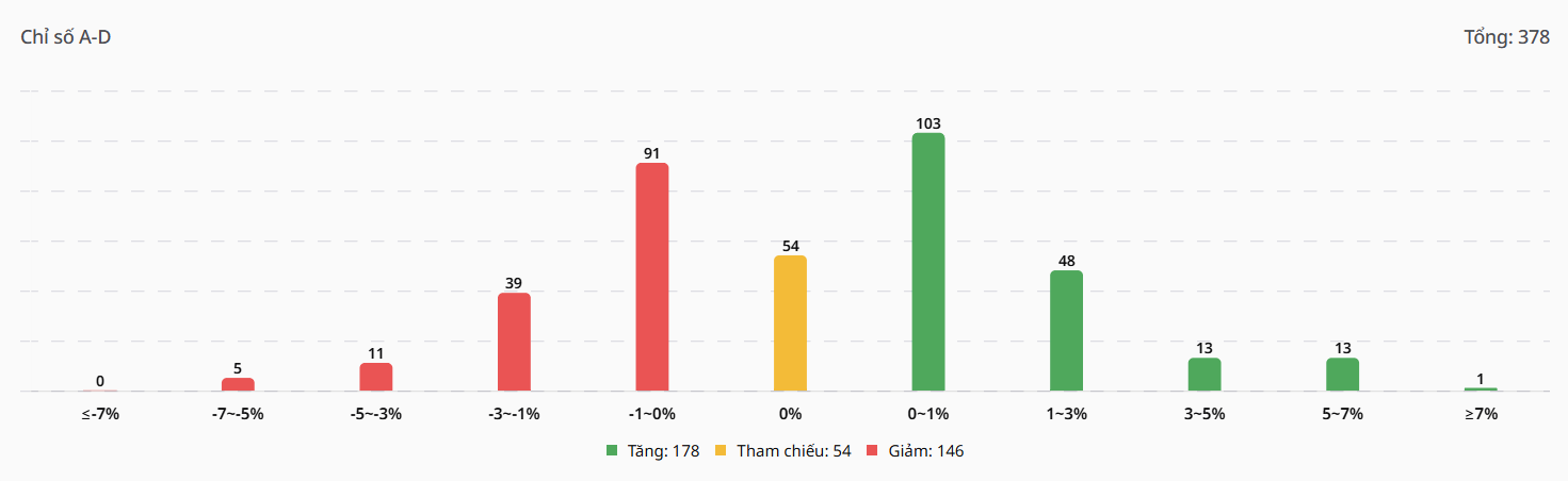 - Nhóm tăng nhẹ (từ 0% đến 1%): Chiếm tỷ trọng lớn nhất với 103 mã.