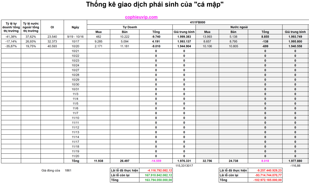 - Tổng vị thế ròng của “cá mập” là Short ròng -5.641 hợp đồng, chiếm -13.89% tổng OI.