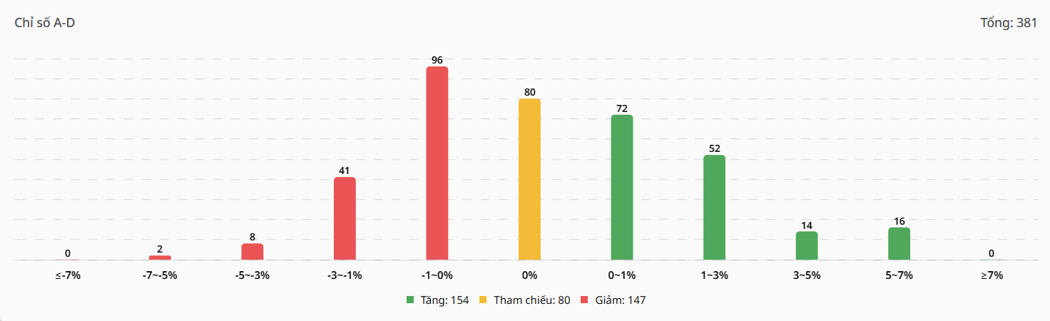 - Nhóm giảm nhẹ (từ -1% đến 0%): Chiếm tỷ trọng lớn nhất với 96 mã.