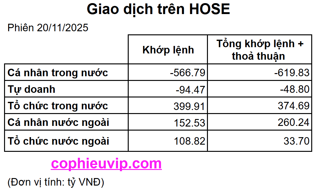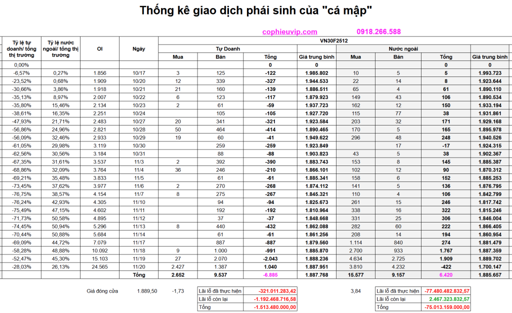 - Vị thế lũy kế (Tổng từ 17/10 đến 20/11):