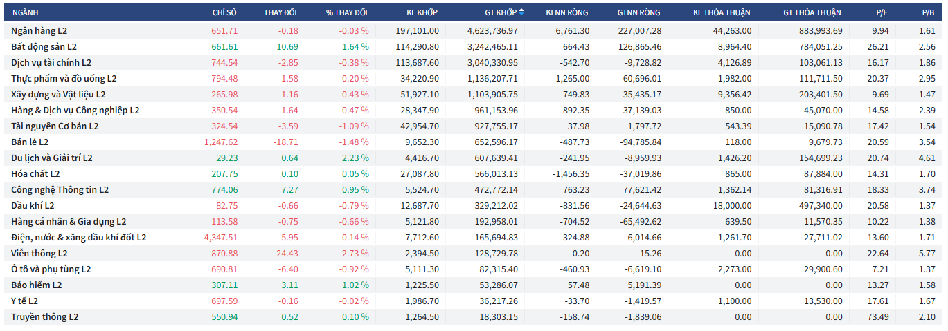 - Thanh khoản khớp lệnh đạt 592.50 triệu cổ phiếu và 16,775,498 triệu VNĐ. Thanh khoản giảm so với phiên trước (741.99 triệu cổ phiếu).
