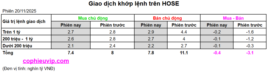 - Khối lượng giao dịch chủ động (cả mua và bán) duy trì ở mức thấp (dưới 35,795 Nghìn), cho thấy sự thận trọng chung của thị trường.