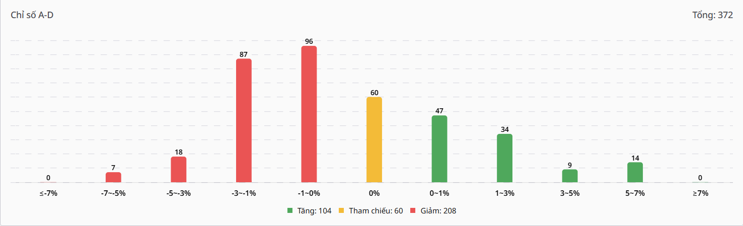 - Nhóm giảm trung bình (từ -3% đến -1%) ghi nhận sự gia tăng đáng kể với 87 mã.