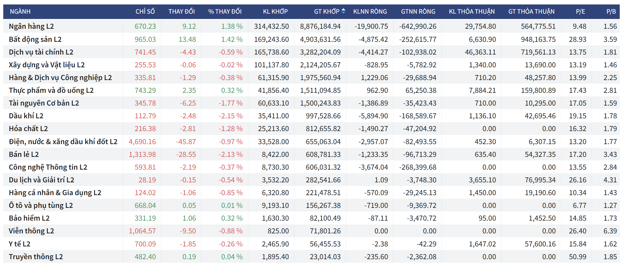 - Khối ngoại bán ròng rát tại nhóm này với giá trị -1.319,23 tỷ đồng.