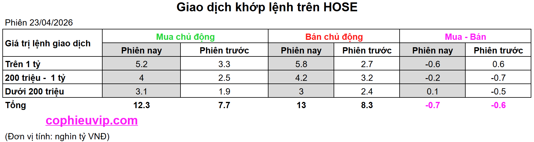 Phiên giao dịch ngày 23/04/2026 tiếp tục chứng kiến một trạng thái “Xanh vỏ, đỏ lòng” ở mức độ gay gắt hơn. Mặc dù chỉ số VN-Index tăng điểm và lập đỉnh mới nhờ sự kéo trụ quyết liệt, nhưng thực tế tất cả các chỉ số còn lại (VN30, Midcap, Smallcap, HNX, UPCoM) đều đóng cửa trong sắc đỏ. Điểm đáng báo động nhất chính là áp lực xả hàng khủng khiếp từ khối ngoại với giá trị bán ròng hơn 1.600 tỷ đồng trên sàn HOSE, tập trung chủ yếu vào nhóm cổ phiếu vốn hóa lớn (VN30). Thanh khoản thị trường tăng vọt lên mức gần 27.000 tỷ đồng nhưng lại đi kèm với đà giảm của đa số các nhóm ngành, cho thấy áp lực chốt lời đang lan rộng và chỉ số chính đang bị “thao túng” bởi một vài mã trụ để giữ trận.