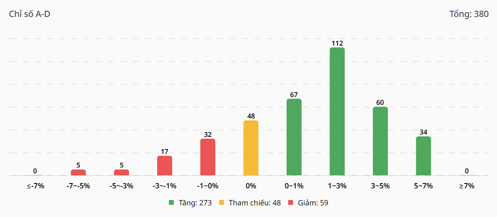 • Số liệu này cho thấy một sự đảo chiều tâm lý rõ rệt; lực cầu đã quay trở lại mạnh mẽ ở các mã trụ cột, giúp chỉ số lấy lại sắc xanh và áp đảo hoàn toàn phe bán.