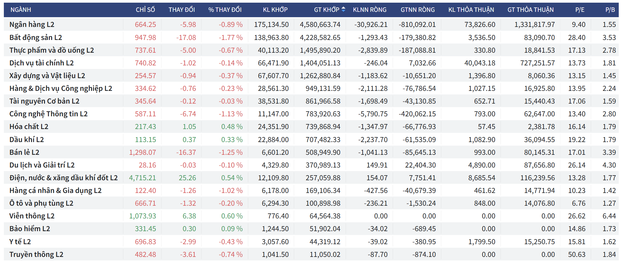 - Khối ngoại tập trung xả ròng áp đảo tại nhóm này với giá trị -1.542,26 tỷ đồng.