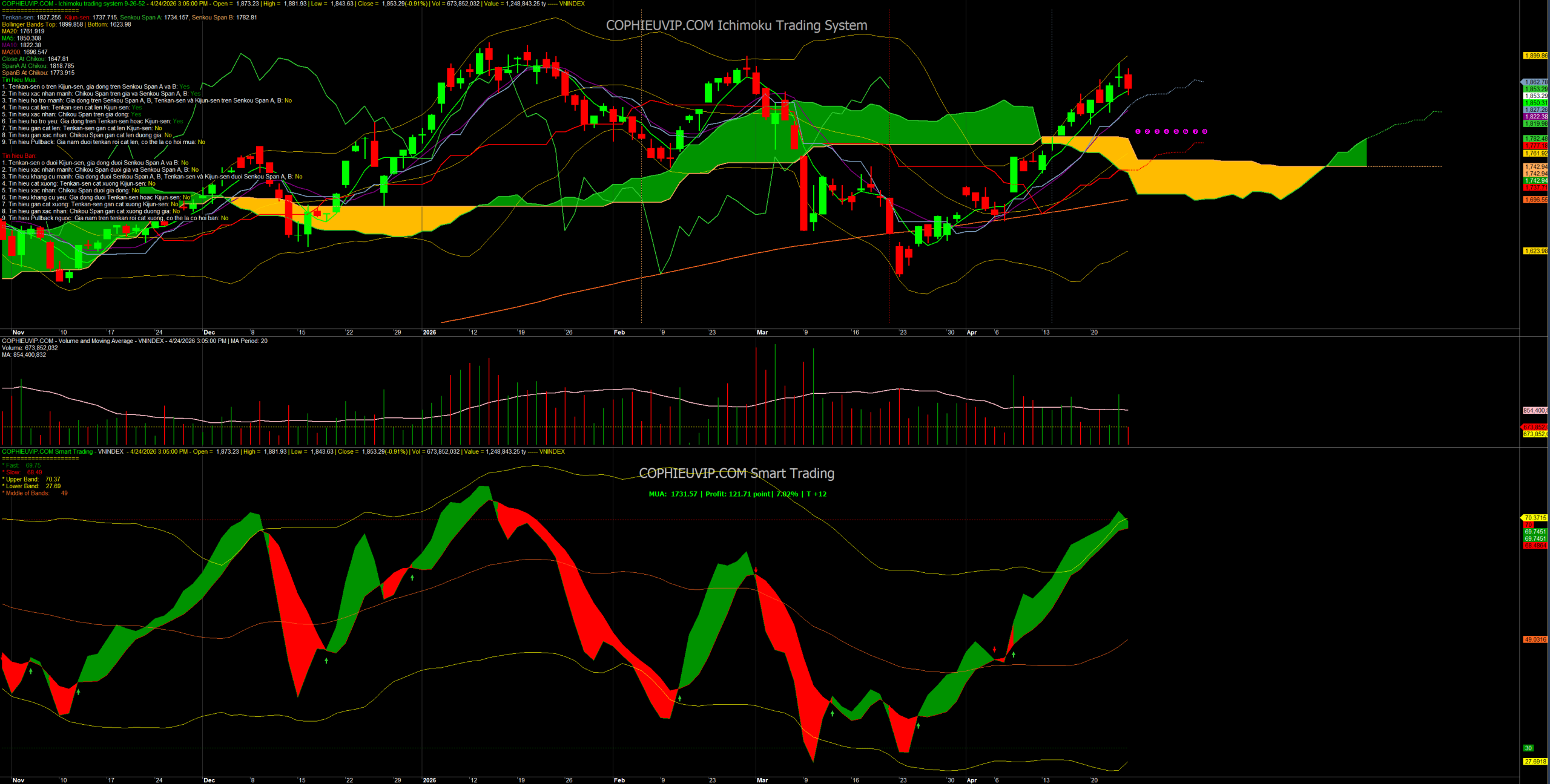 Diễn biến thực tế của phiên 24/04 đã diễn ra đúng hoàn toàn với Kịch bản 1 và có sự xuất hiện của các dấu hiệu trong Kịch bản 3 (như đã phân tích trong bản tin Bắt Mạch Chứng Khoán Ngày 24/04/2026: “Bom” Margin 413 nghìn tỷ, trụ gồng đến bao giờ?).