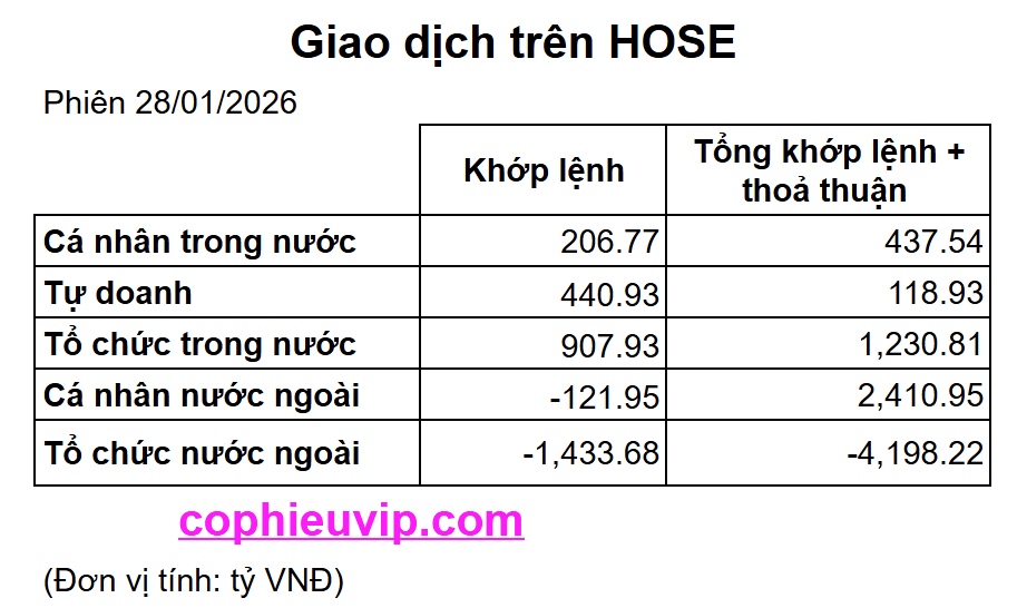 Kết luận sơ bộ: Phiên giao dịch ngày 28/01/2026 tiếp tục bị chi phối bởi áp lực bán tháo cực lớn tại cổ phiếu VIC. Việc cường độ giảm của VIC ngày càng gia tăng, cộng với sự “buông tay” hỗ trợ của VCB và sự tham gia đè điểm của nhiều ngân hàng lớn khác (BID, ACB) đã đẩy VN-Index vào trạng thái mất điểm sâu. Dù GAS và FPT vẫn nỗ lực bền bỉ nhưng trọng số quá lớn từ nhóm bất động sản và ngân hàng điều chỉnh đã khiến mọi nỗ lực hồi phục trở nên vô vọng.