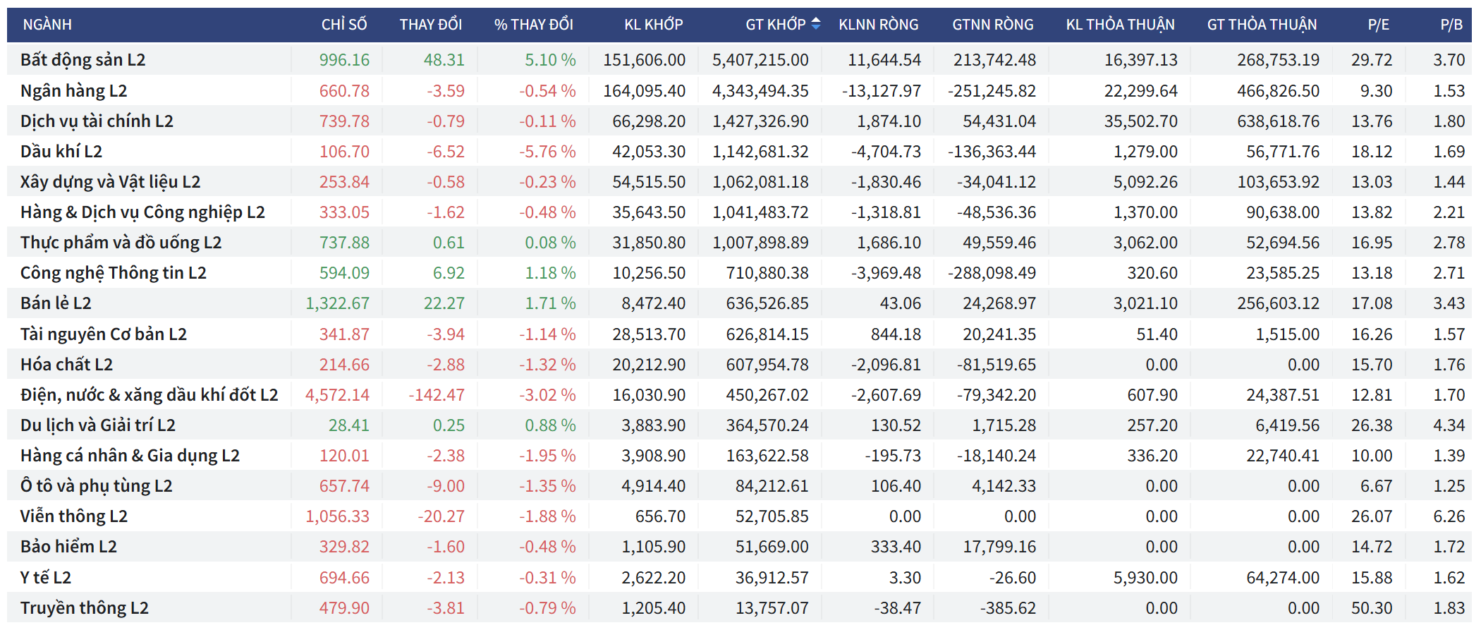 - Khối ngoại tiếp tục bán ròng hơn 530 tỷ đồng trên kênh khớp lệnh. Nhóm nhà đầu tư cá nhân bắt đầu chuyển sang vị thế bán ròng để hiện thực hóa lợi nhuận sau giai đoạn hồi phục.