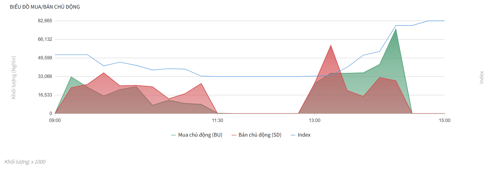 - Lực Cầu trở lại (13:30 – 14:00): Lực Mua chủ động tăng mạnh, vượt qua lực Bán chủ động, đẩy chỉ số hồi phục mạnh mẽ.