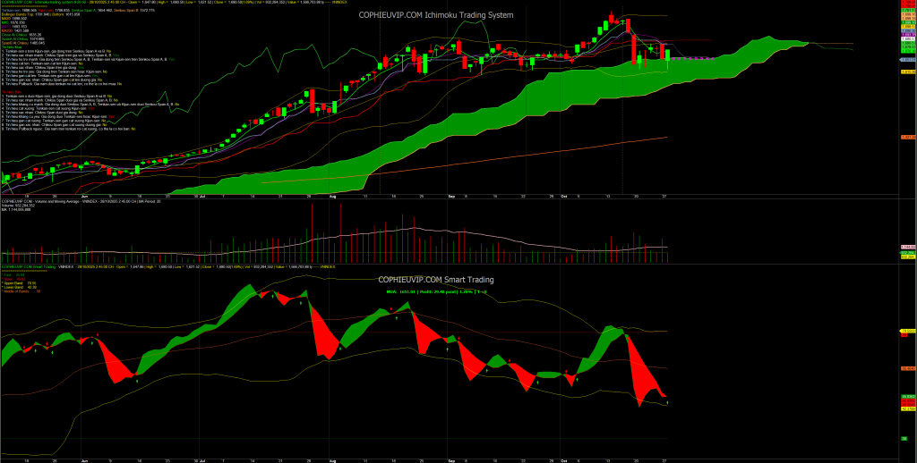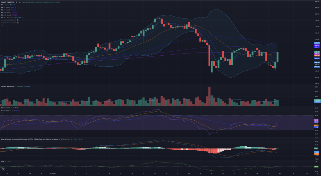 Trong phiên 28/10/2025, thị trường đã tiếp tục giằng co trong biên độ rộng và có khả năng tạo đáy 2 với vùng hỗ trợ quanh 1600 như đã phân tích trong bản tin sáng nhắn trên nhóm Zalo.