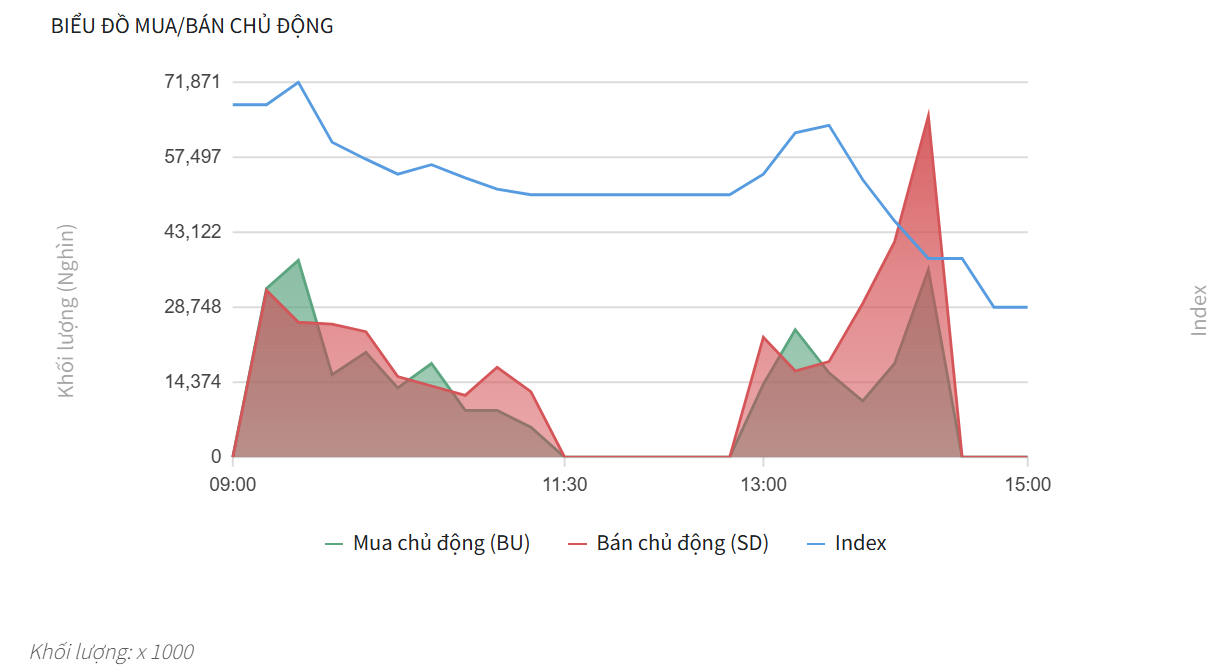 - Bùng nổ Lực Bán cuối phiên (Sau 14:00): Khoảng 14:00 – 14:30, lực Bán chủ động tăng vọt lần thứ hai, đạt đỉnh cao nhất trong cả phiên.