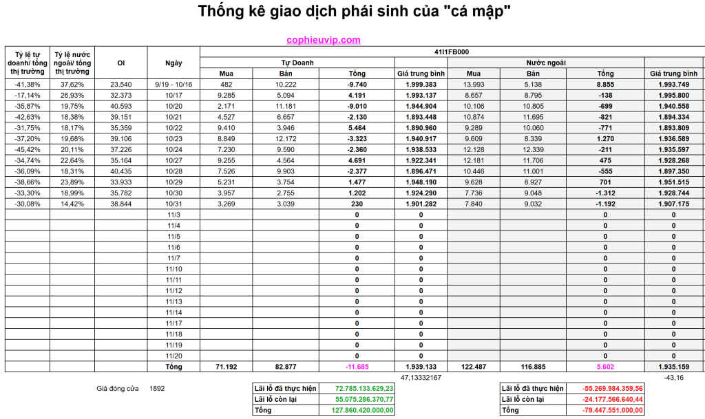 - Tự doanh đang nắm giữ vị thế Short ròng tích lũy và đang bị lỗ còn lại -8.510 tỷ VND.
