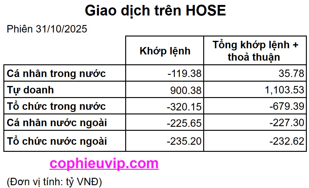 Phiên giao dịch ngày 31/10/2025 chứng kiến sự giảm điểm mạnh mẽ và đồng thuận trên toàn thị trường, xác nhận áp lực bán tháo đã quay trở lại.