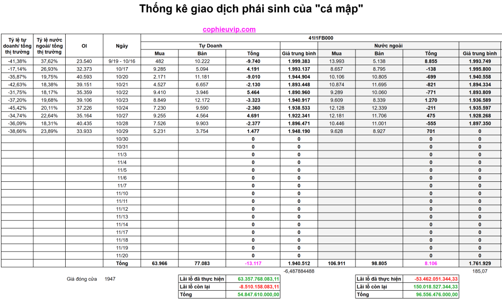 - Tự doanh đang nắm giữ vị thế Short ròng tích lũy và đang bị lỗ còn lại -8.510 tỷ VND.