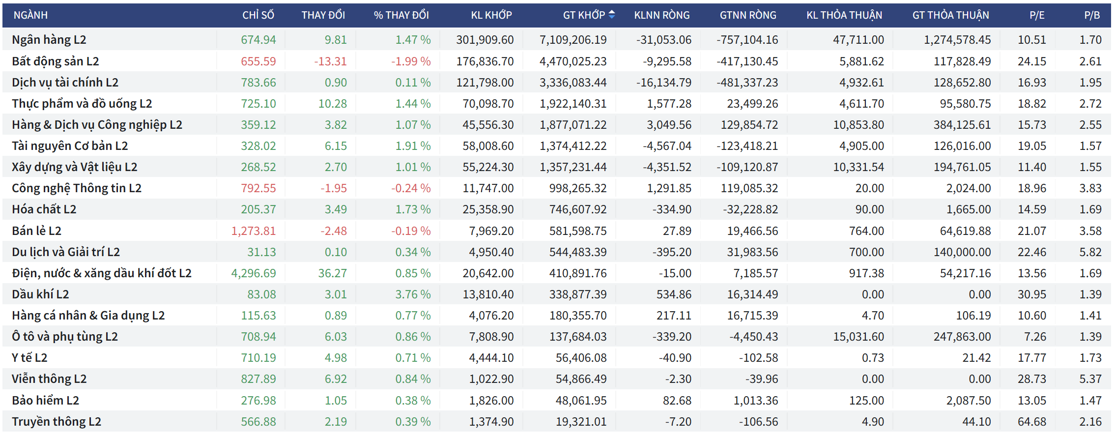 - Bất động sản: Giảm -1.99%.