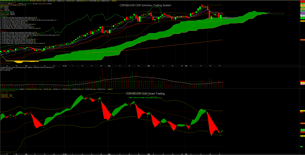 Trong phiên 29/10/2025, thị trường đã đi đúng theo Kịch bản 1: Giằng co và Kiểm tra Kháng cự như đã phân tích trong bản tin Bắt Mạch Chứng Khoán Ngày 29/10/2025: Kháng Cự Then Chốt Cần Vượt Qua Để Xác Nhận Đảo Chiều đã phân tích.