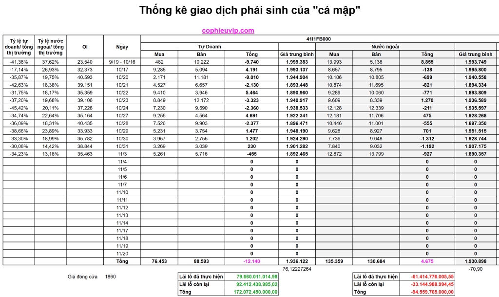 - Tự doanh đang nắm giữ vị thế Short ròng tích lũy và đang bị lãi còn lại +92.412 tỷ VND.