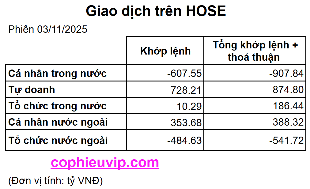 Phiên giao dịch ngày 03/11/2025 chứng kiến sự giảm điểm mạnh mẽ và đồng thuận trên toàn thị trường, xác nhận thị trường đã bước vào nhịp điều chỉnh sâu.
